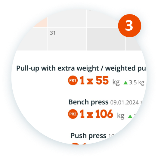 Workout days in a calendar view | ||
