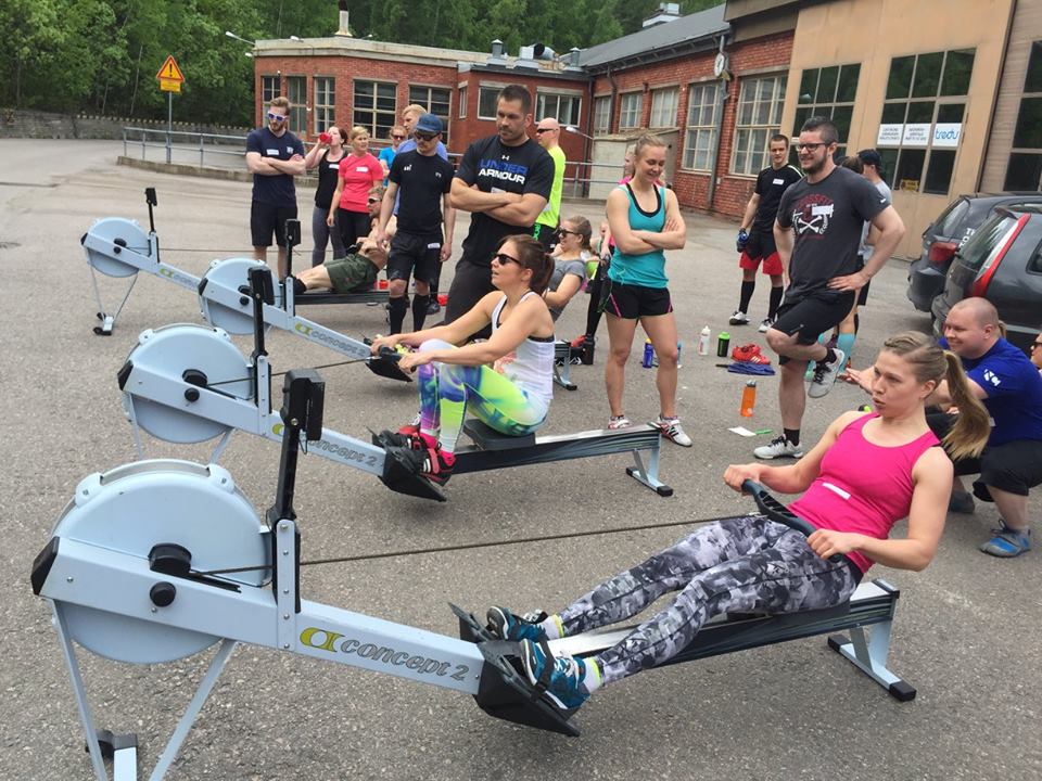 The workout begins with the athlete in a standing position. Athlete must move from standing to flat on the ground to touching an object (6 inches above their max standing reach) with both hands.