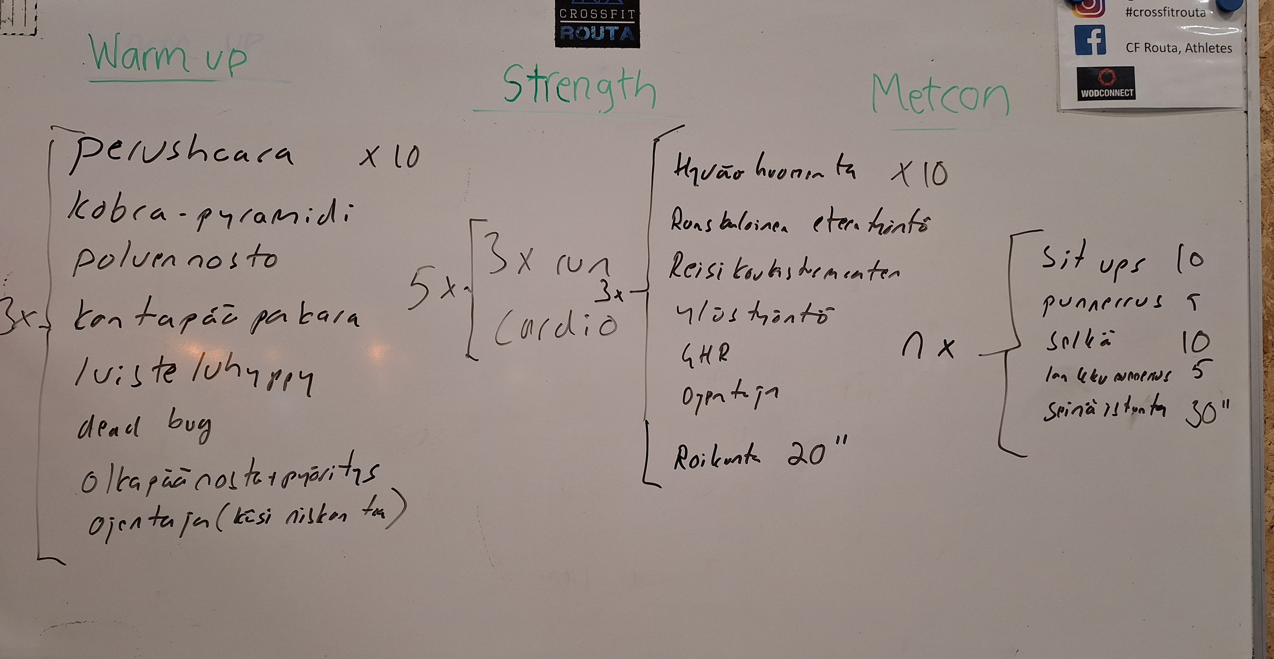 Harjoituksen tavoite on 20:00 minuutin ajan pysyä liikkeellä tasaisella tahdilla. Tarkoitus on kehittää perusvoimaa sekä kehonhallintaa