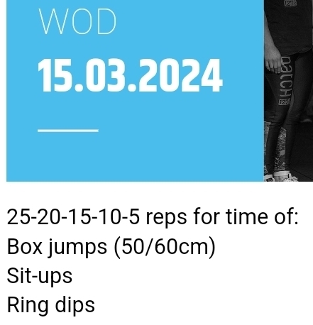Odd : 15/12 calories rowing + 10 box jump overs 50/60cm