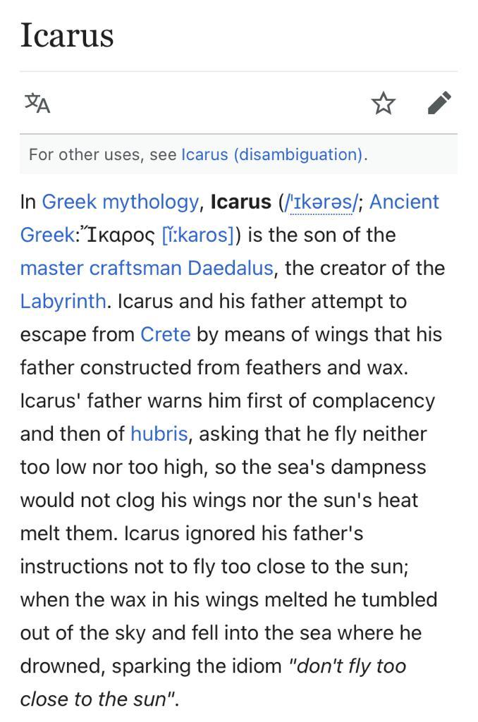 Don’t fly too close to the sun.