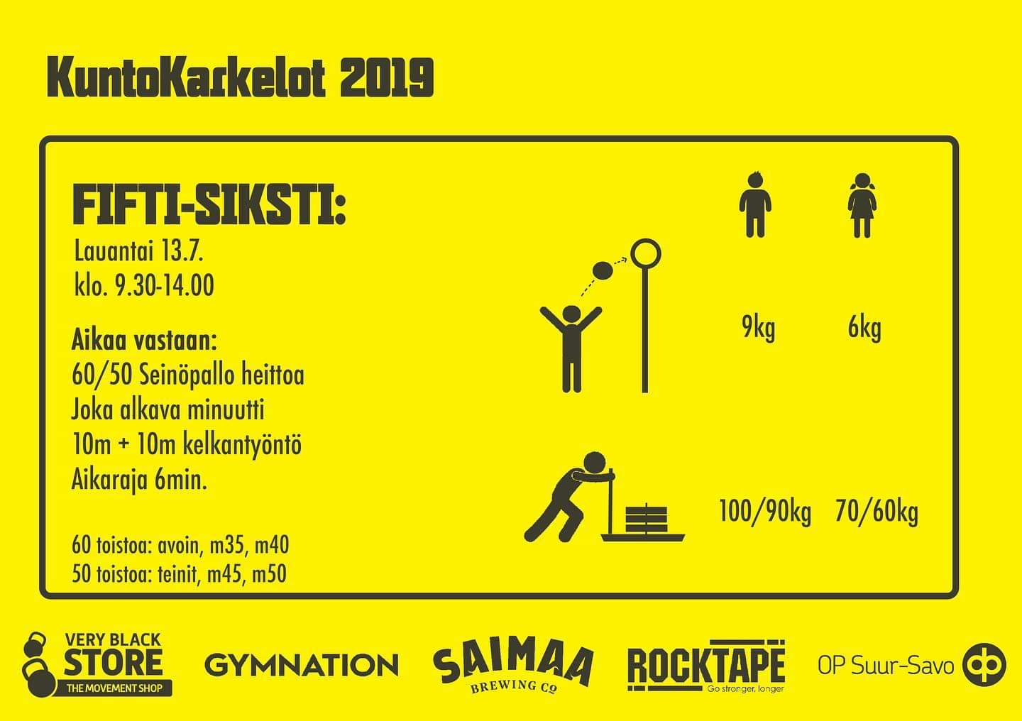 Joka alkava minuutti 10+10 kelkantyöntöä 70 kg