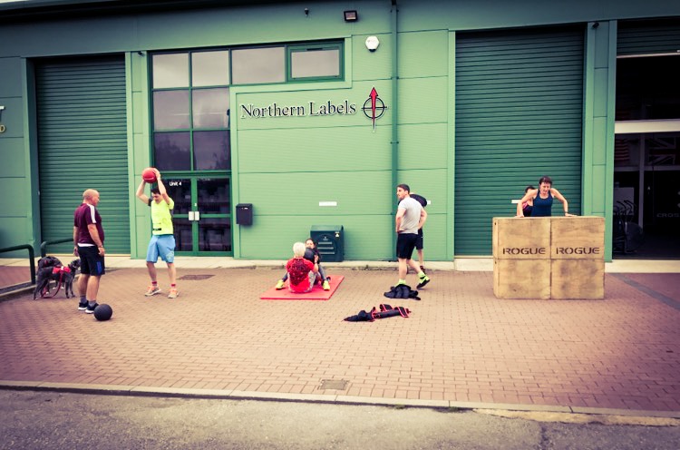 Rest 60 secondsTeams get one Wall Ball and one Box. Team members rotate through the three work stations at 60 second intervals and all members rest at the same time.