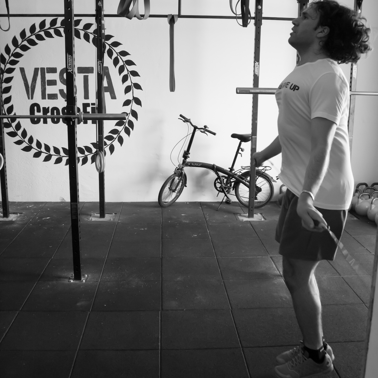 In teams of two, alternate sets to complete four each of:10 Calorie Row