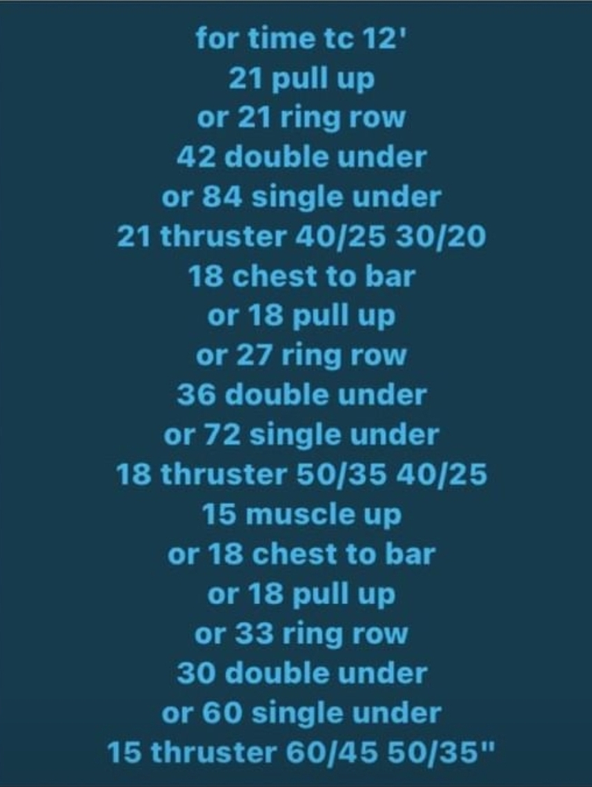 30-40-50-60-70-60-50-40-30 reps, for time of: