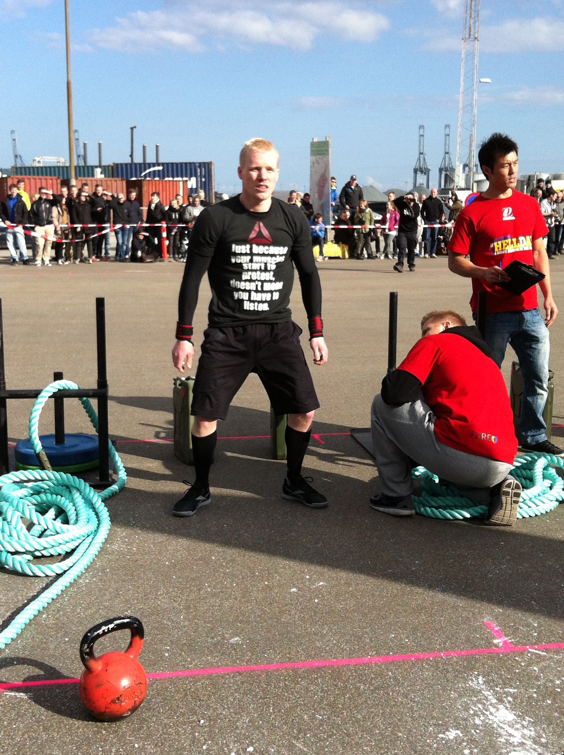 Score is least amount of reps in any set of each excercise. (Example: 7+5) -