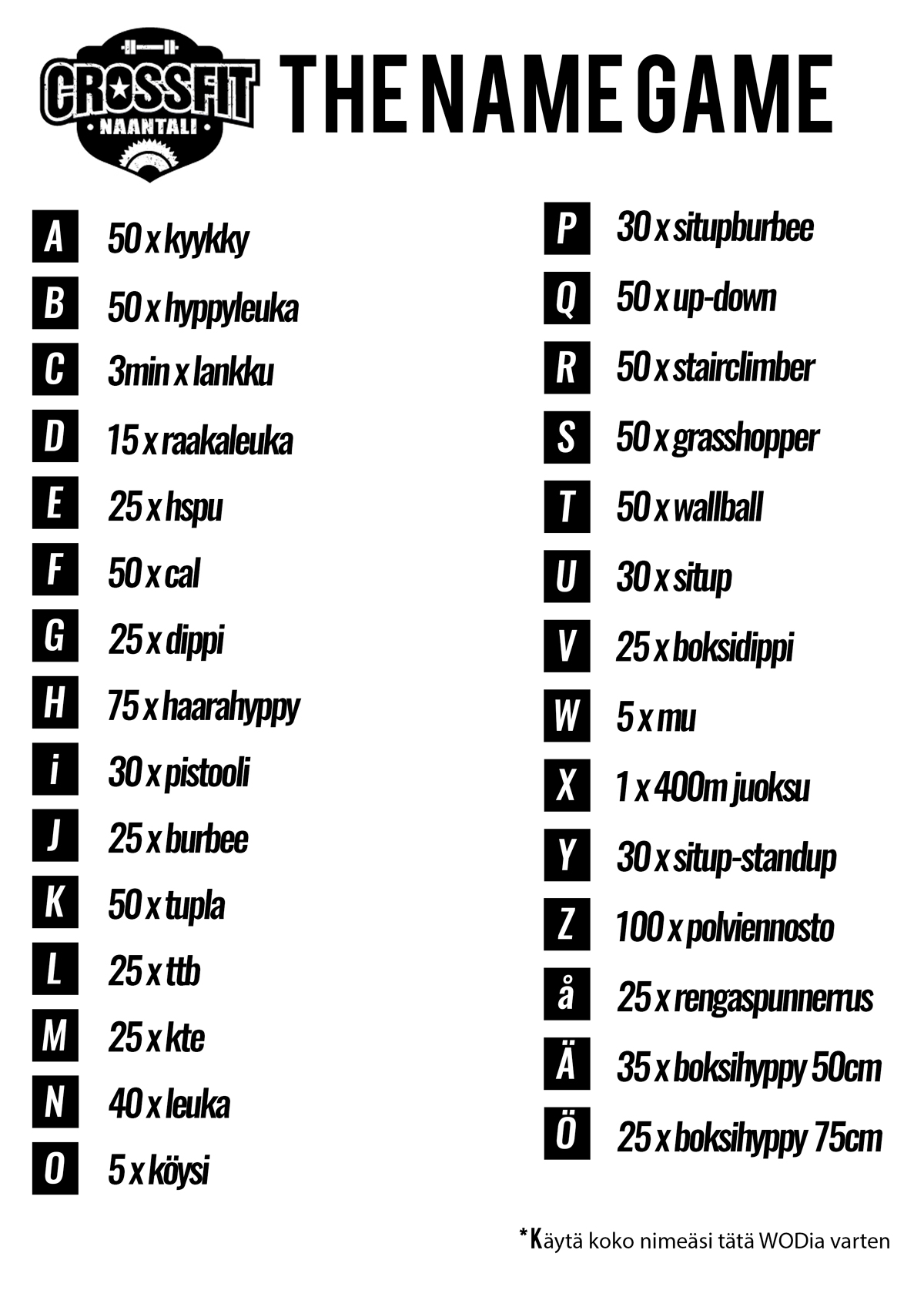 3-5 varpaat tankoon +10 istumaannousu + 20s lankku -