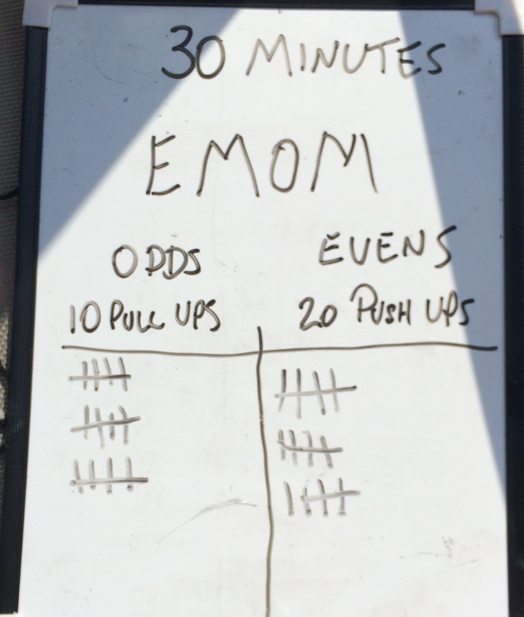 Assault bike 1 min on 1 min off for 15 rounds totaling 30 mins.