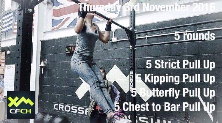 3 sets of: 10 HSPU, 10 T2B, 10 box jump, 10 lunges