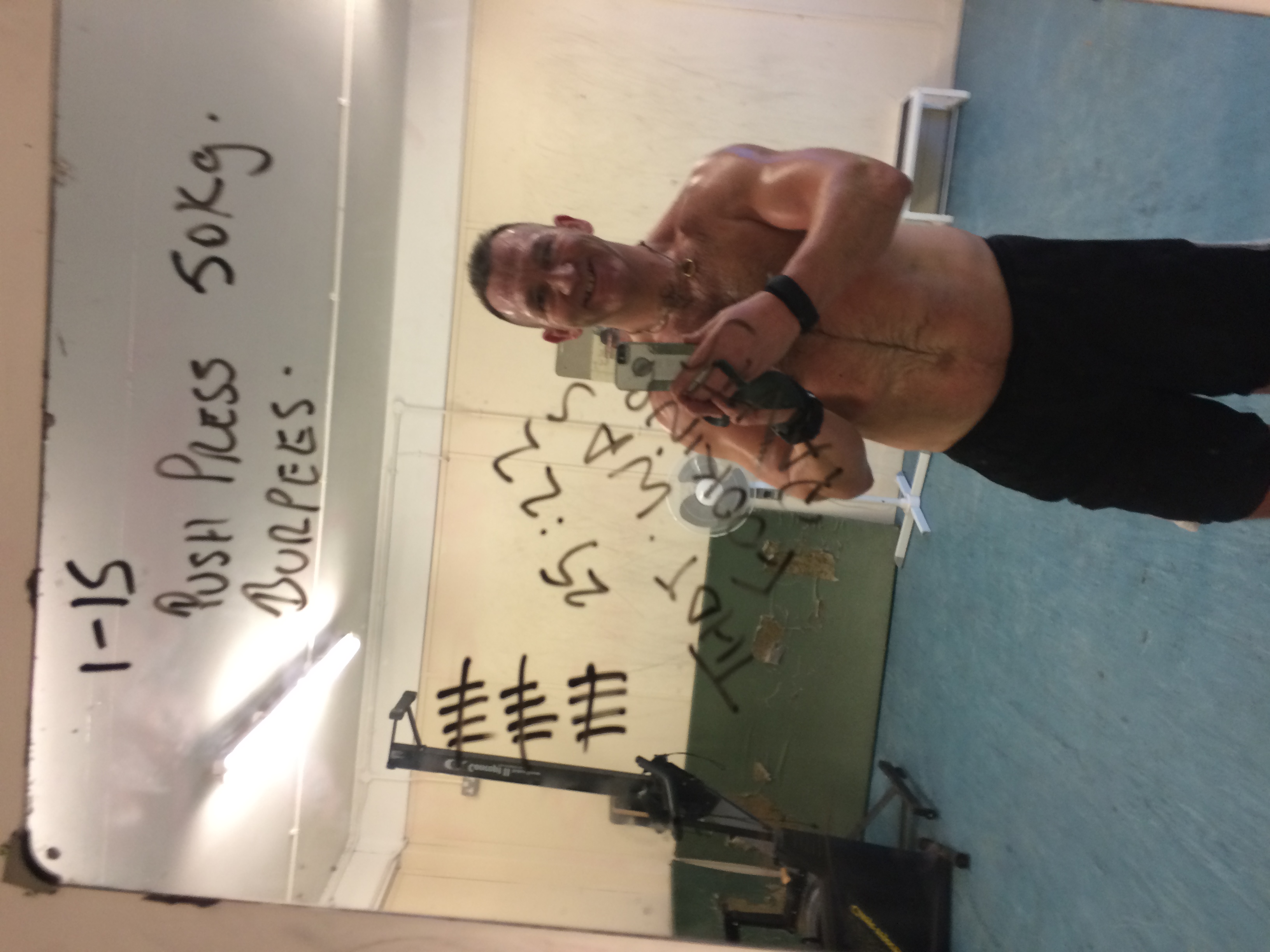 Hard session on my own in The Den. 1-15 50kg push press and burpees. Horrible horrible horrible 😎👍