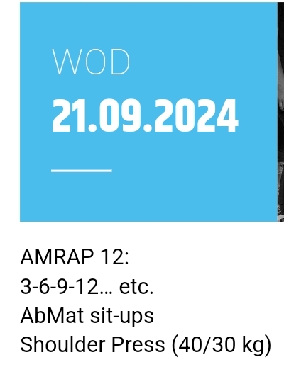 5 Power Clean@60-65% + 5 Box JumpHarjoituksen tarkoituksena on tehdä alkavalla minuutilla 5 raakaa rinnalleveto ja 5 boxihyppyä, kahdenkymmenen minuutin ajan. Valitse kuorma ja boxin korkeus siten, että sinulle jää ainakin 20sekuntia lepoa jokaiselta minuutilta. Harjoitus ei ole maksimisuoritus, vaan sinun pitäisi pystyä tekemään täydet 20min läpi, ilman että joudut välissä skaalaamaan.