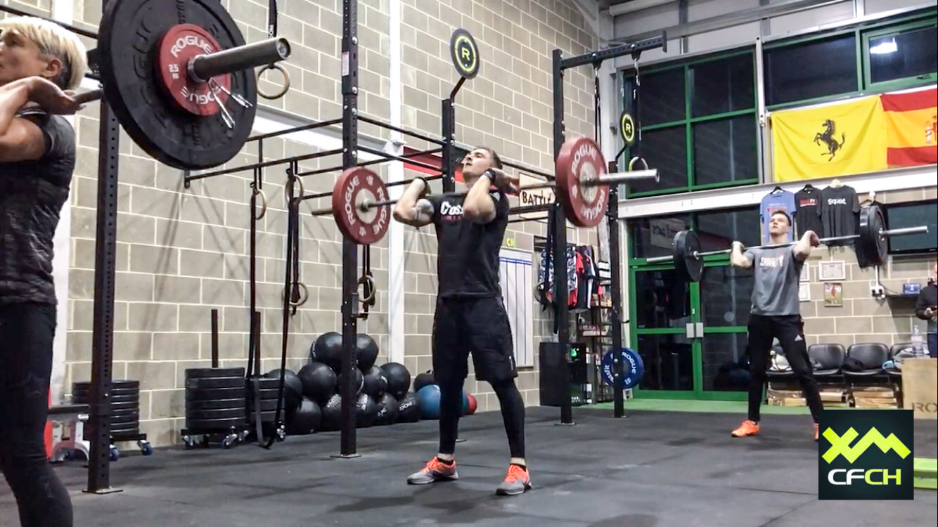 From 4:00-5:00, 35-lb. dumbbell hang squat cleansRest 5 minutes between rounds.