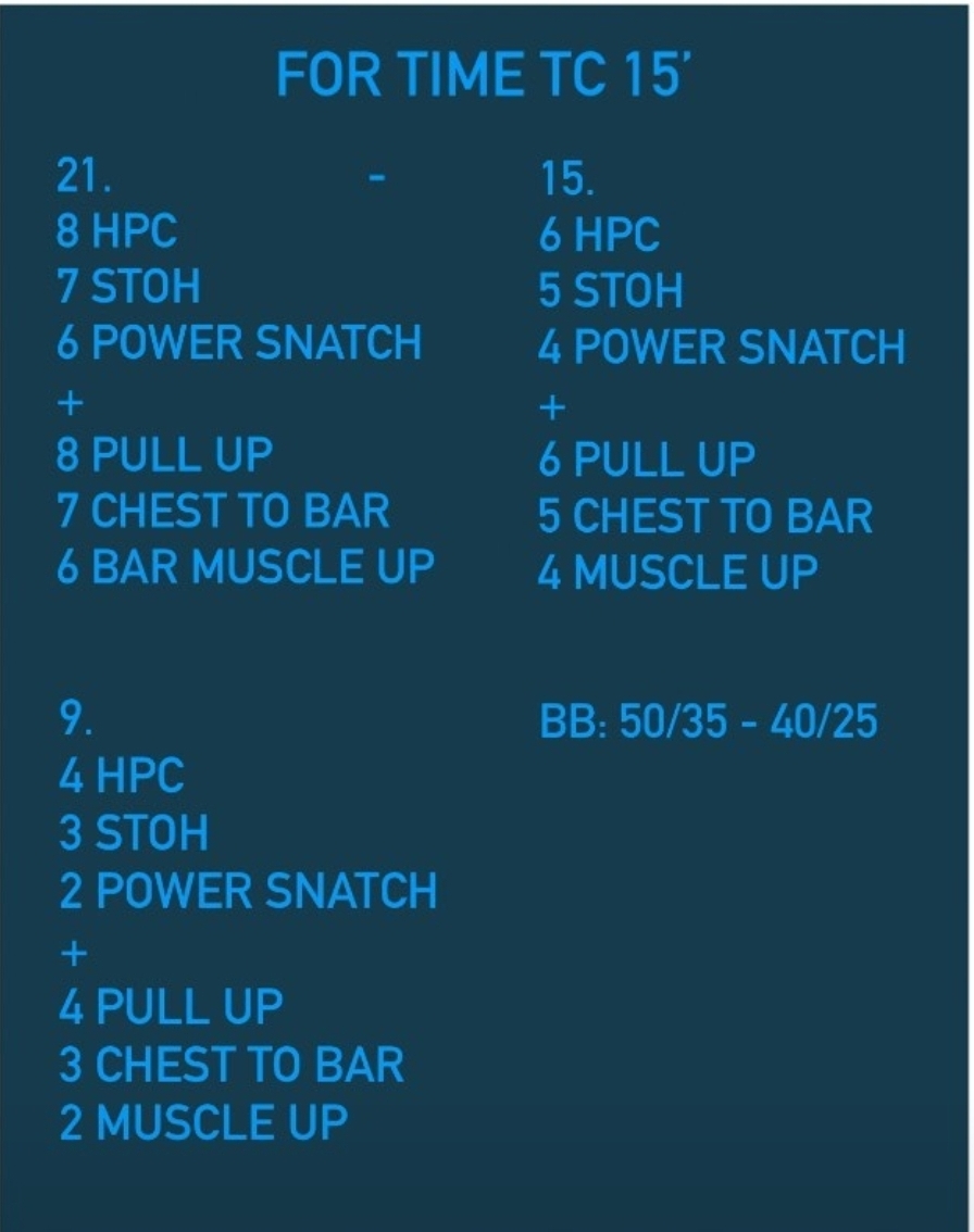 BB Power Snatch touch n’go (60/40Kg) 3-5 reps