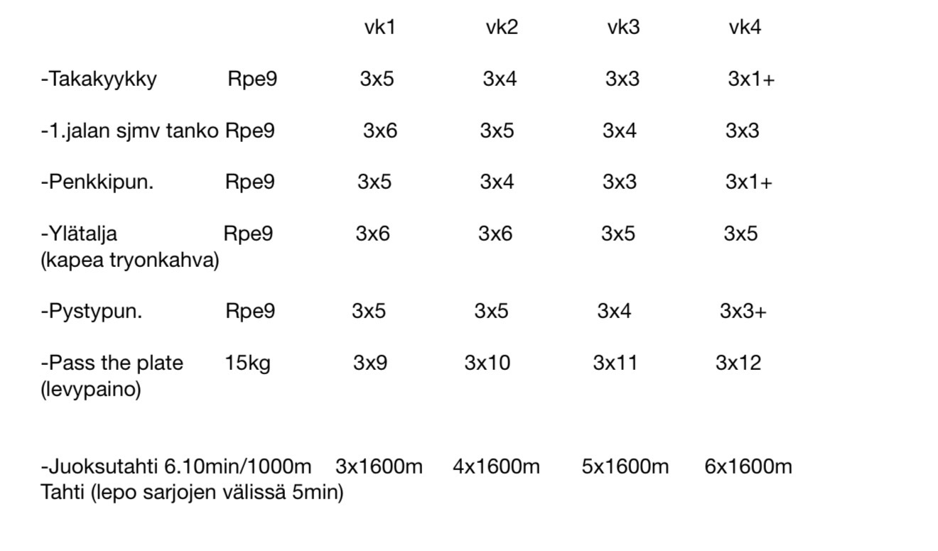 note: 1-2 reps in reserve! Do the exercises if you have time and energy!! The order of the moves doesn't matter!