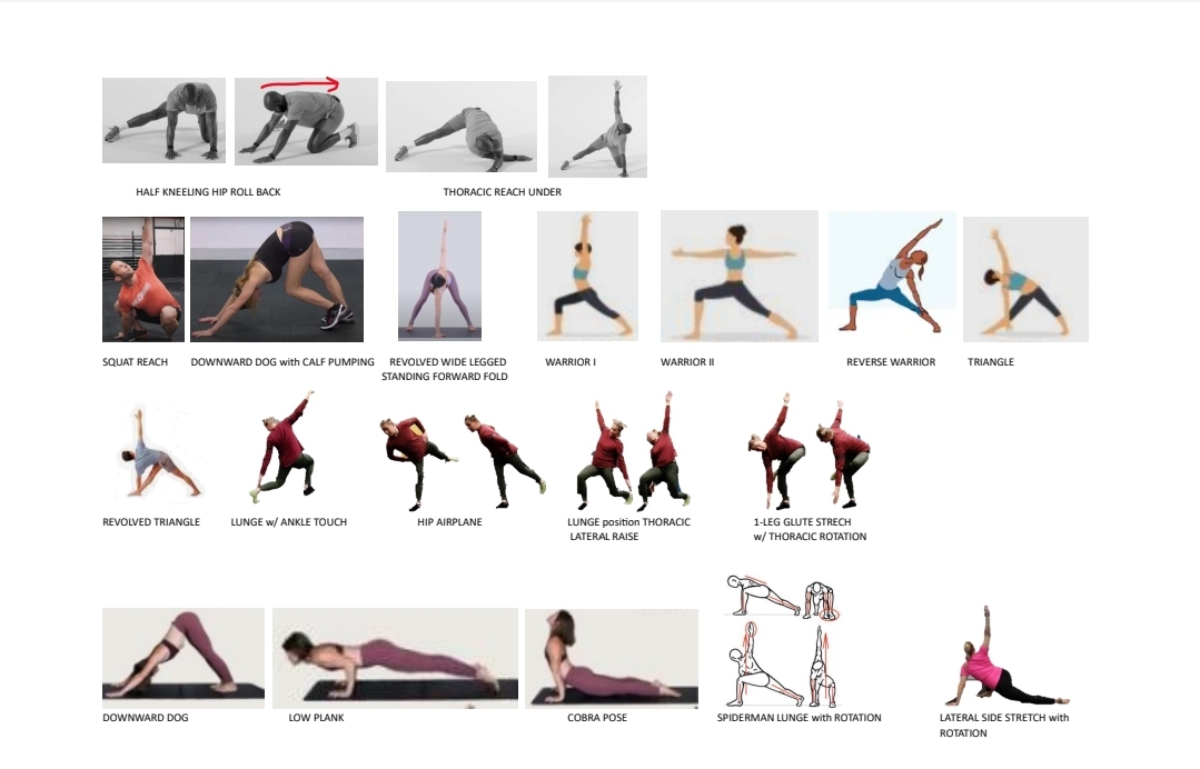 2x DOWNWARD DOG & PLANK & COBRA POSE & SPIDERMAN LUNGE w/ ROTATION both side & LATERAL SIDE STRETCH w/ ROTATION