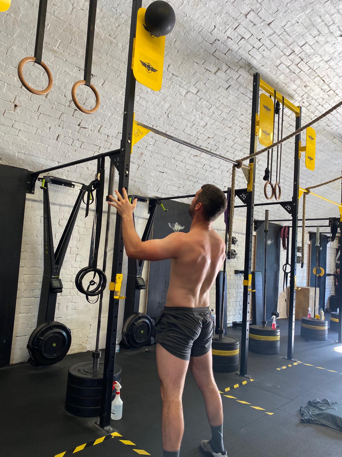 6-9-12-15 Box step overs (W/DB: 2x22.5/15)(Time cap: 10min.)