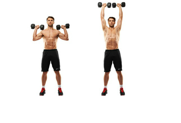 5 Dumbbell Man-Makers(Man-Makers = Row left, Push-Up, Row right, Power Clean, Push Press)