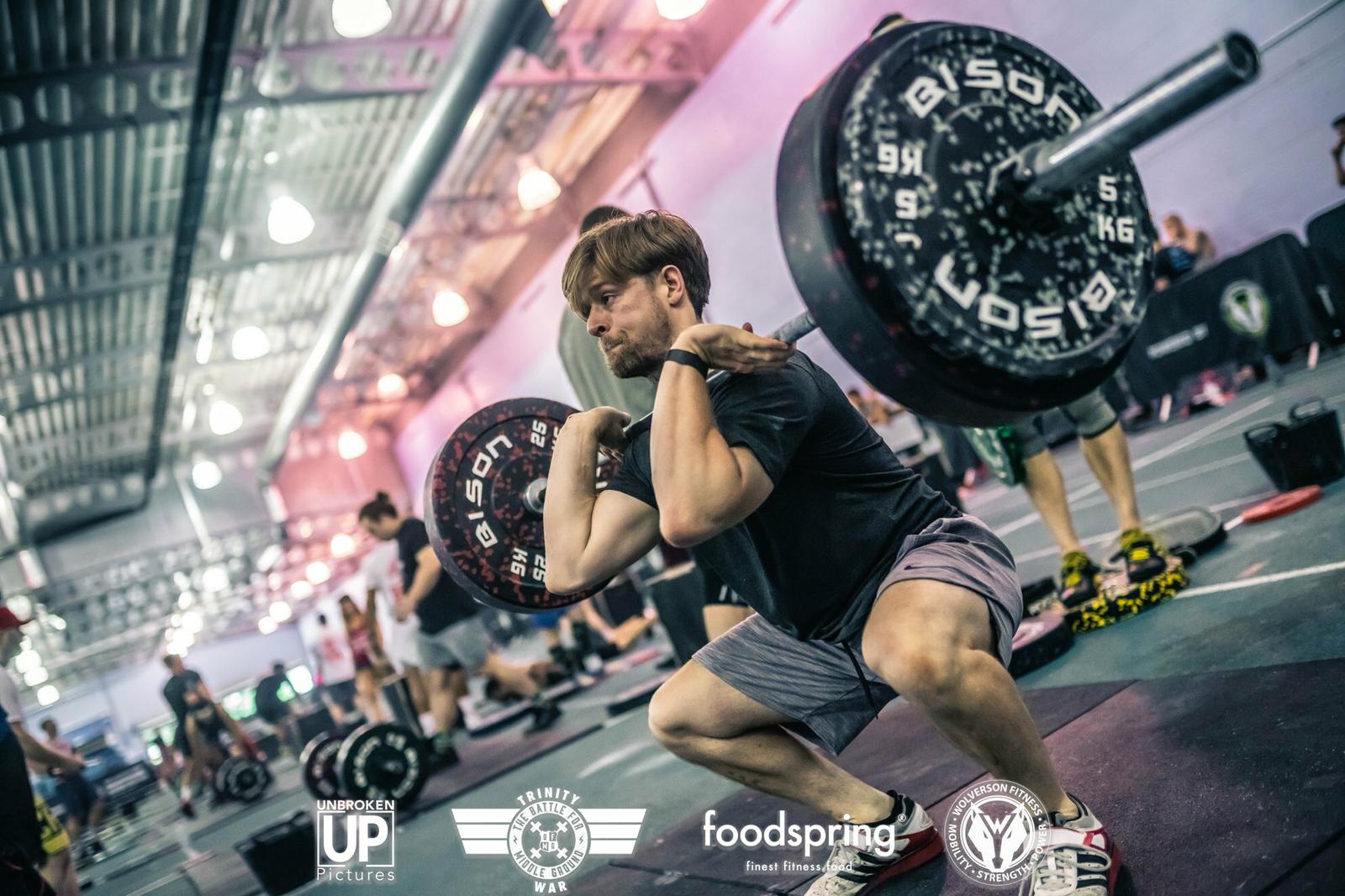 1min back squats @ 20/15kg*Weight should allow the athlete to move up & down consistently & not affect their running pace (go heavier or lighter if needs be)"