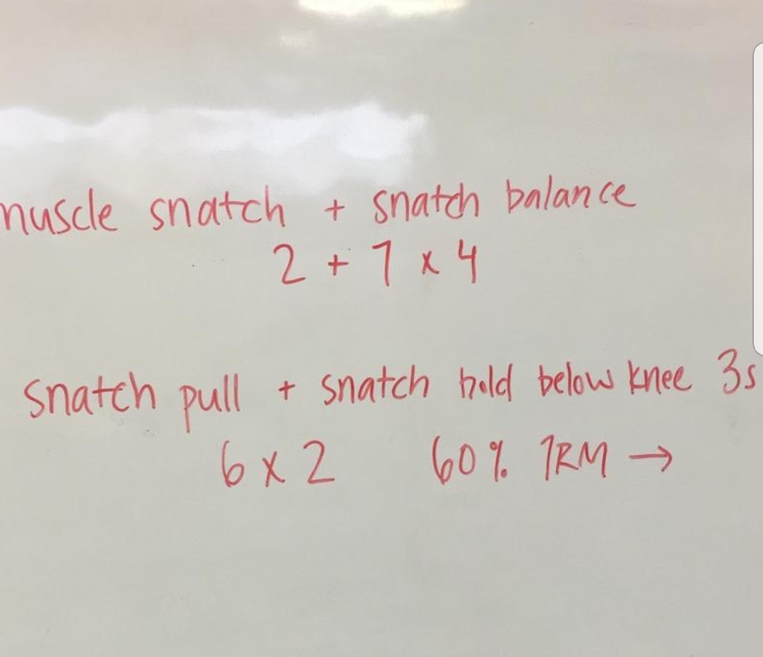 1 Power Clean + 2 Front Squats + 1 Split Jerk (3 sec pause in catch)