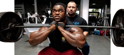 Synchronized bar-facing burpeeswork up to hvy 3 ft squat(10)