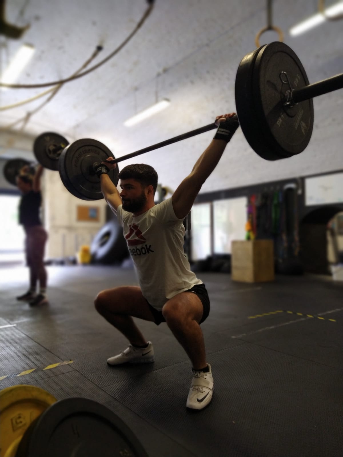 Every break perform 10 OH squats (from floor)