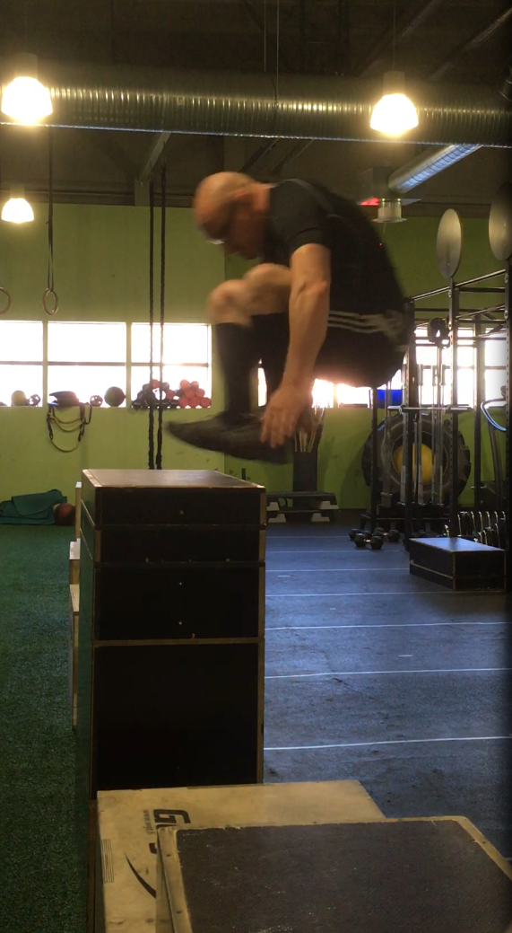 1) 5+5 Weighted Box Step-Up, AHAFA (use front rack or overhead position for weights)
