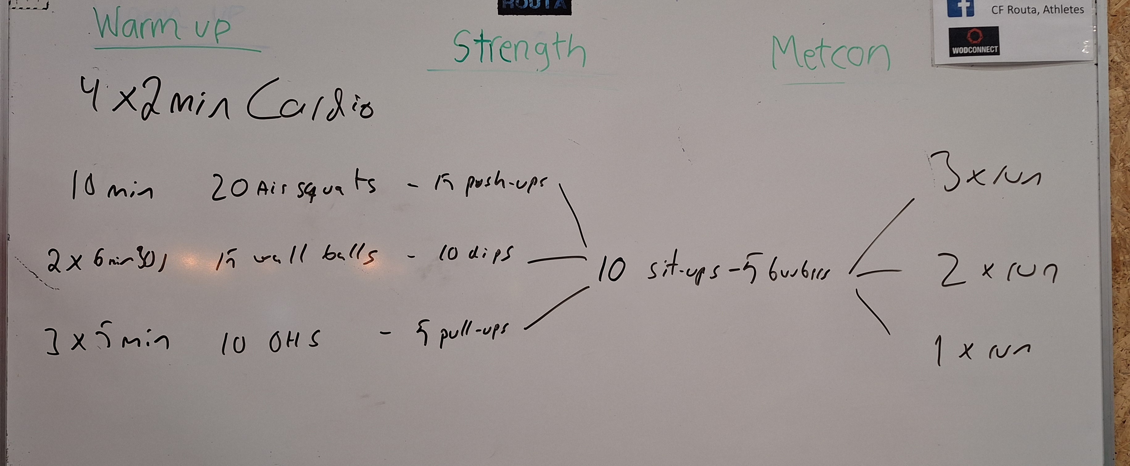 Buy in: 2k Echo bike/ 3k bike (divide anyhow)/AMRAP in remaining time (relay - partner A has to complete a full round before change)