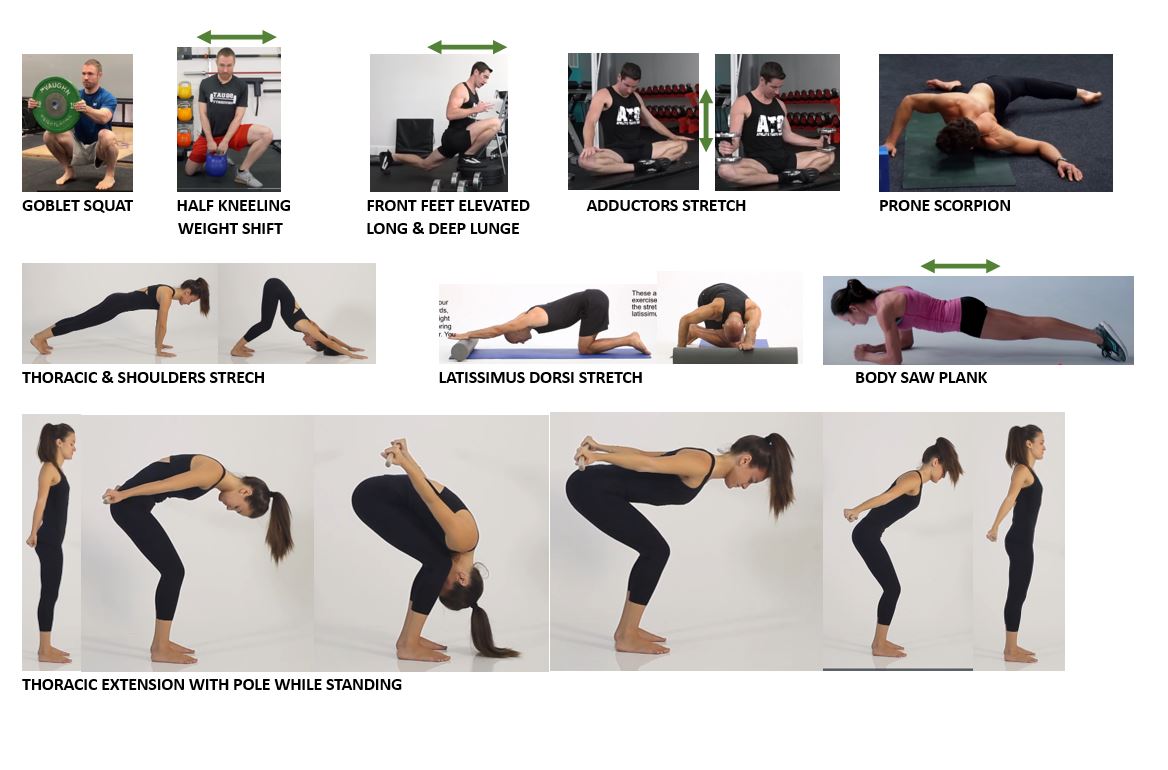 THORACIC EXTENSION WITH POLE WHILE STANDING20× SHOULDER TAP IN WALL HANDSTAND HOLD or