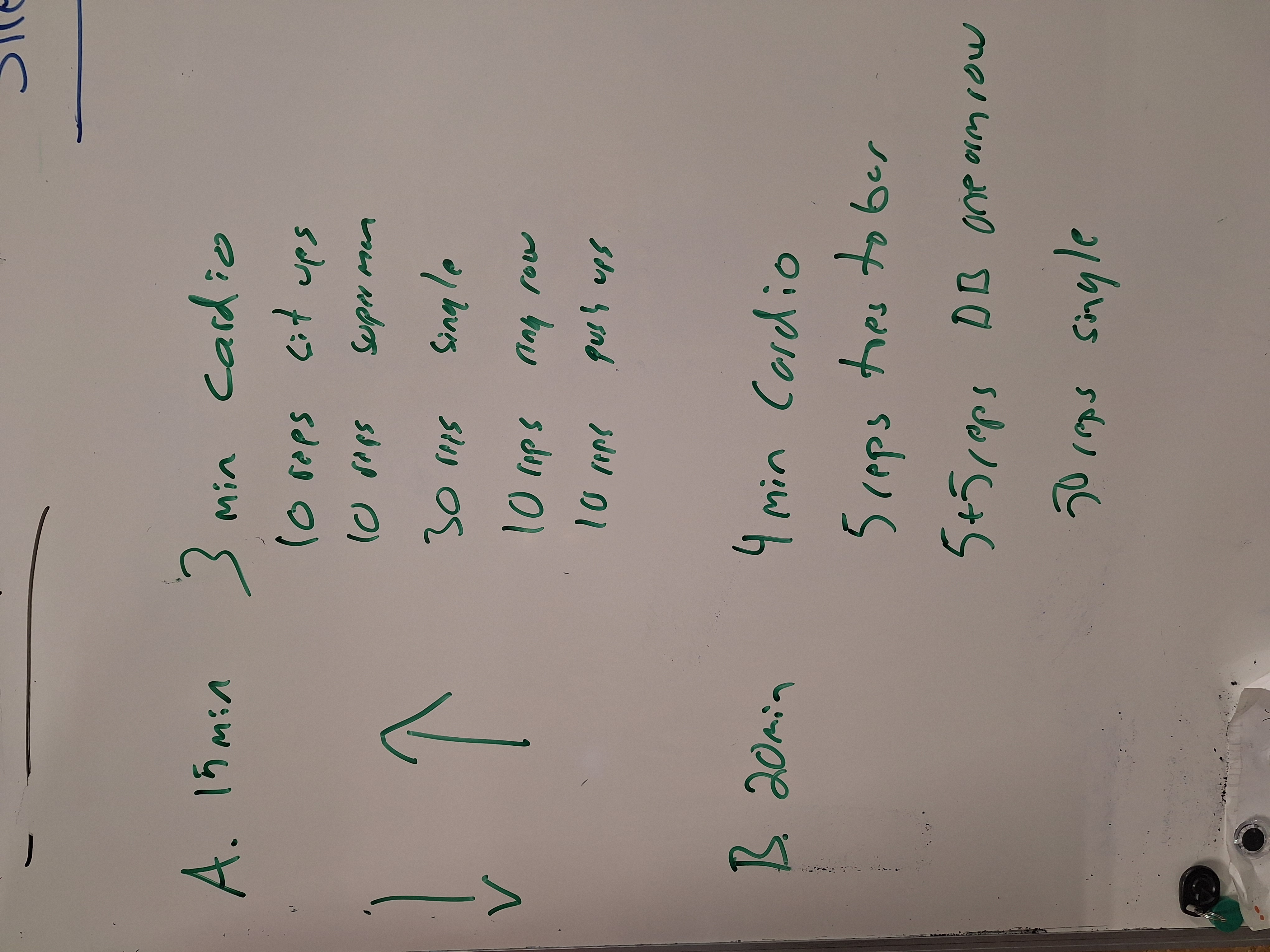note: 1-2 reps in reserve! Do the exercises if you have time and energy!!Go every 2 min for 3-5 rounds!